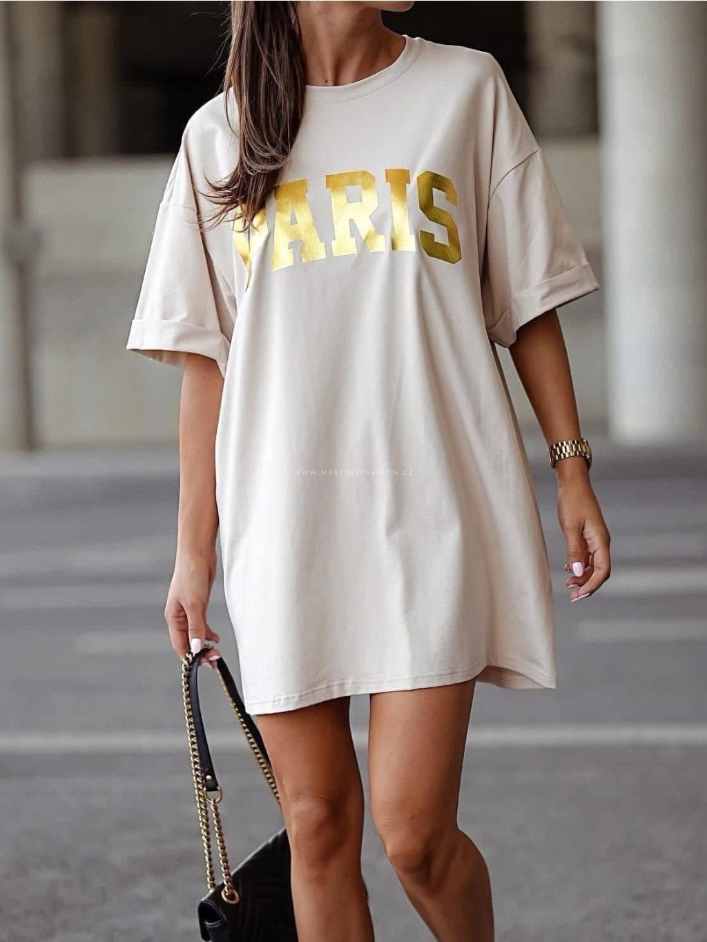 Béžové tričkové šaty PARIS