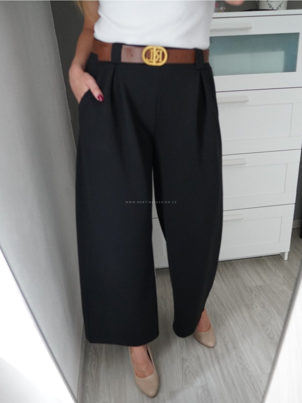 Černé kalhoty ELLARIE s páskem