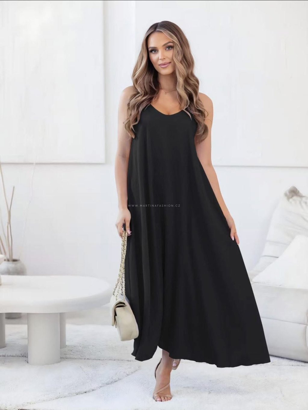 Lehké a vzdušné maxi šaty na ramínka s pohodlným volným střihem.