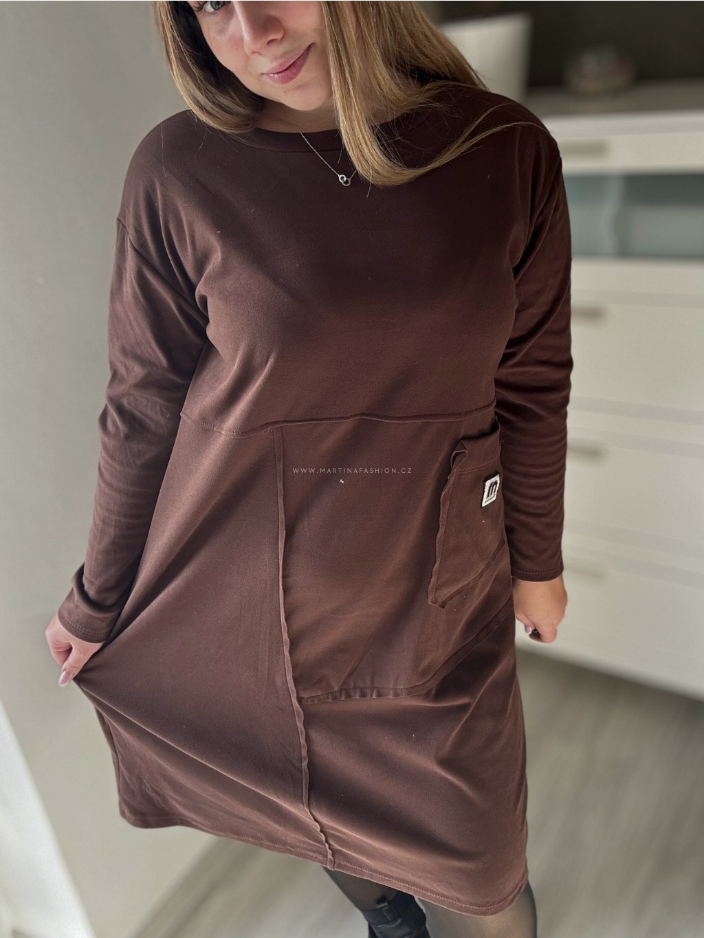 Pohodlné šaty v ležérnějším střihu zaujmou příjemným materiálem a praktickými detaily. Měkčí úplet se krásně přizpůsobí postavě a působí volně, ale upraveně. Díky jednoduché linii a kapsičce vpředu působí model nenuceně a zároveň žensky.