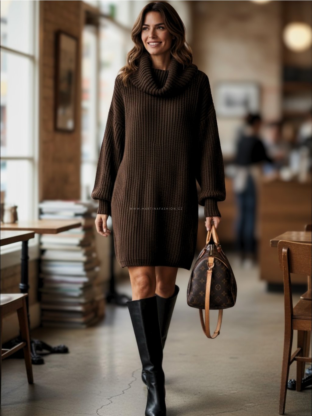 Pohodlný dlouhý svetr - nebo šaty - s výrazným rolákem a volnější siluetou jsou skvělou volbou pro chladnější dny. Díky příjemnému materiálu a jednoduchému střihu je snadno zkombinujete s kozačkami i teniskami. Elegantní a zároveň ležérní styl pro každodenní nošení.
