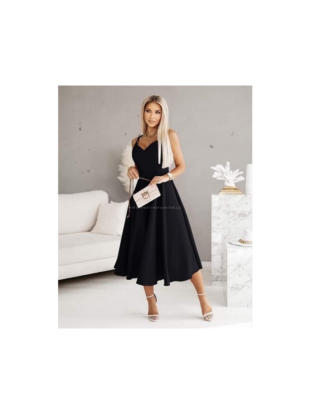 Elegantní černé midi šaty VIANELA s áčkovou sukní