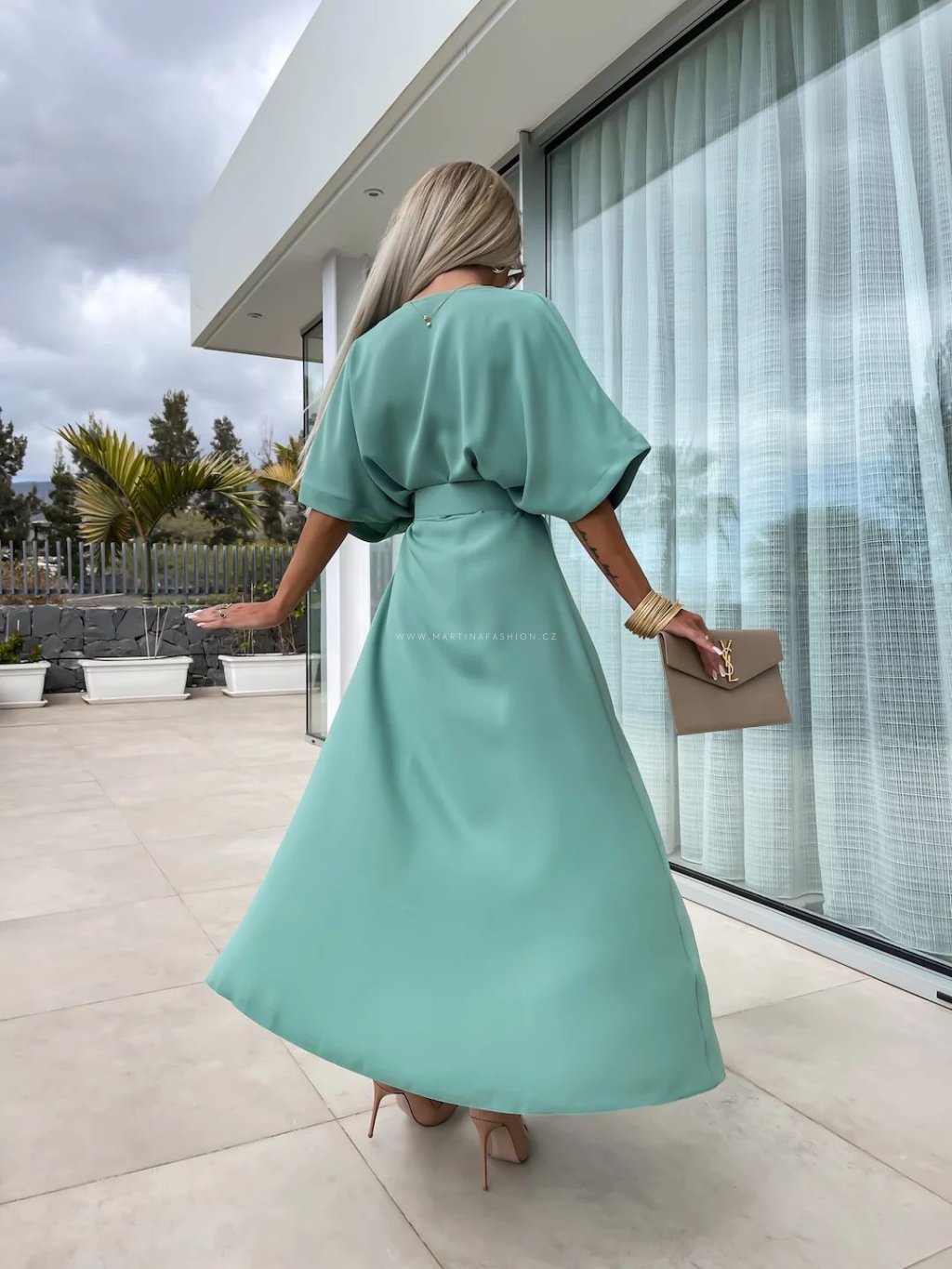 Šaty LEXIA jsou ideální volbou pro ženy, které milují spojení elegance a pohodlí. Díky volnému střihu a širokým rukávům se v nich budete cítit komfortně po celý den. Výrazný pásek krásně zvýrazní pas a výstřih do V podtrhne ženskost celého outfitu. Dlouhá délka šatů působí luxusně a opticky prodlužuje postavu. Skvěle se hodí jak na slavnostní příležitosti, tak na běžné letní dny.