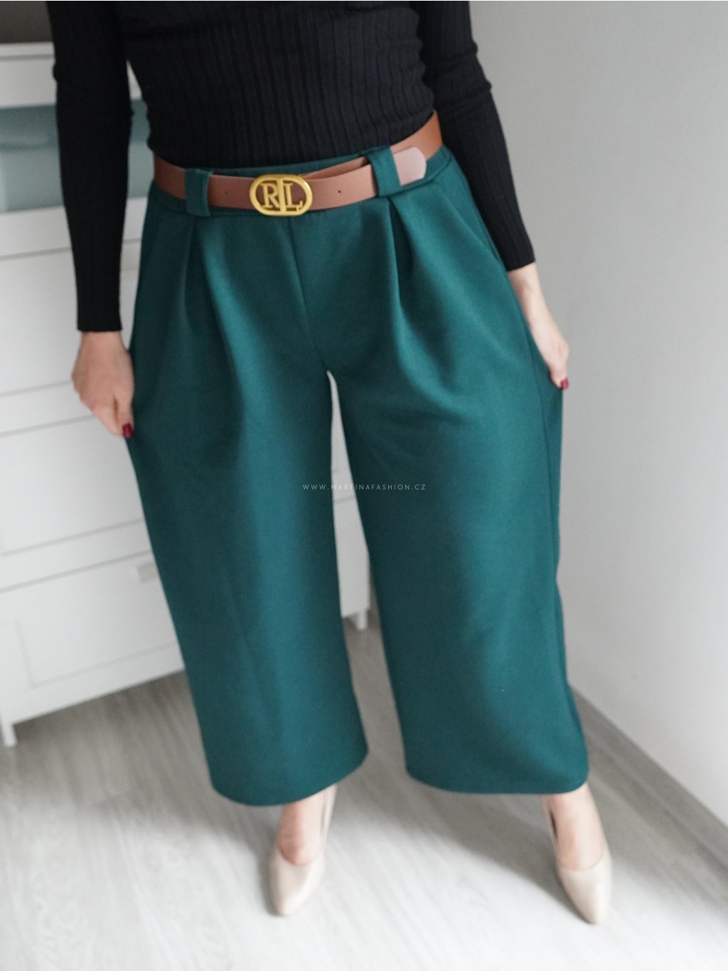 Petrolejové kalhoty ELLARIE s páskem