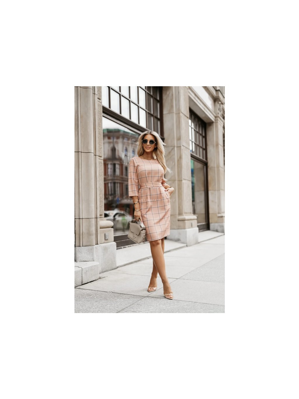 Růžové kostkované šaty TRELLA
