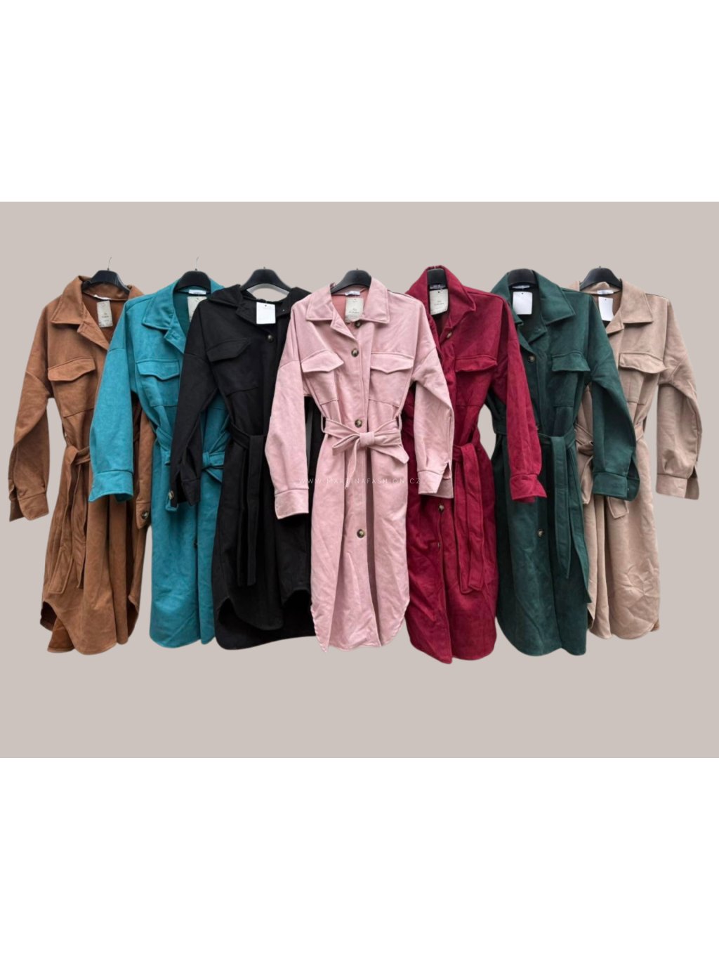 Semišový kabát SELVINA s páskem – výběr barev po rozkliknutí