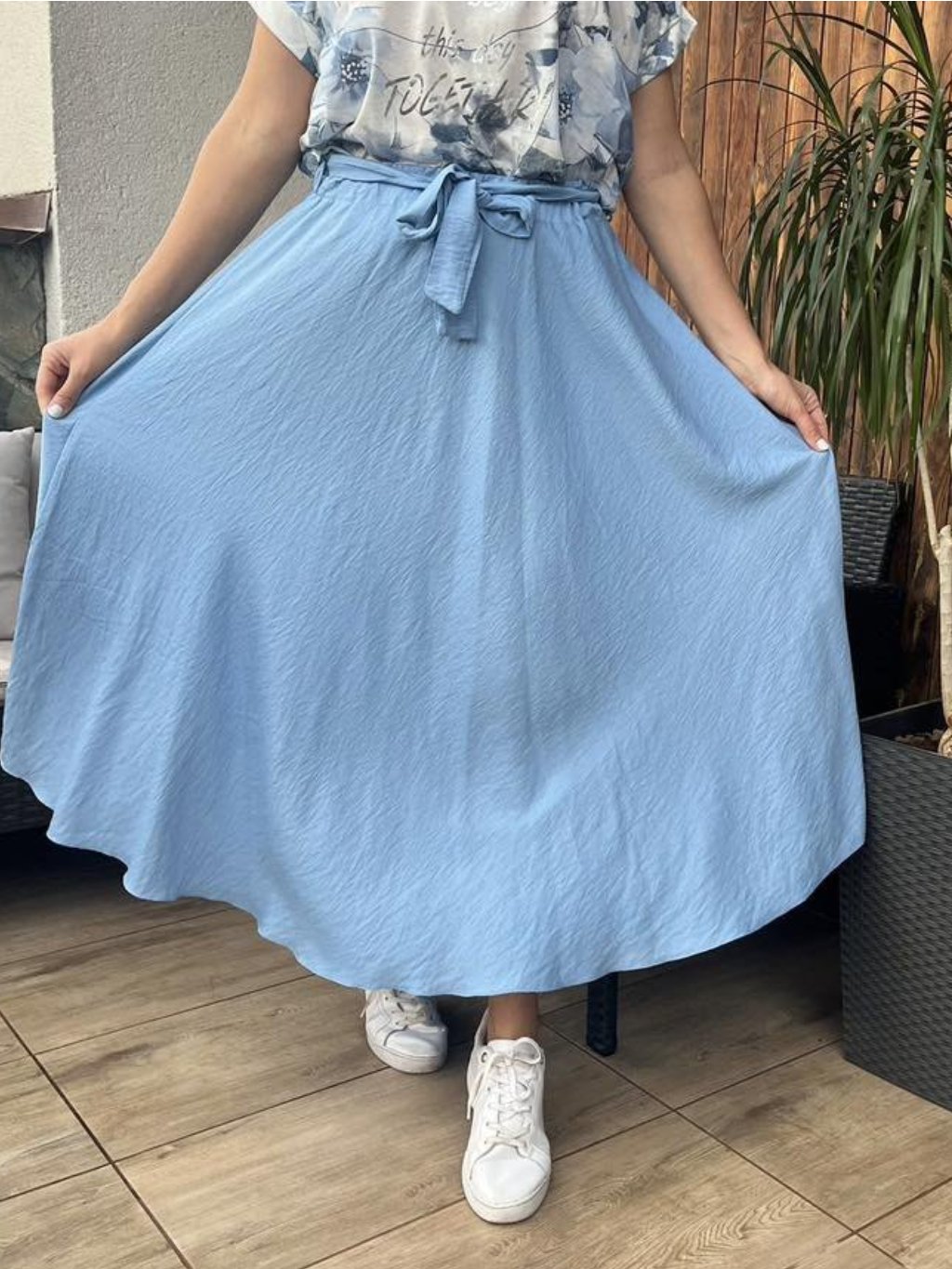 Světle modrá dlouhá sukně DALIN s vázáním v pase
