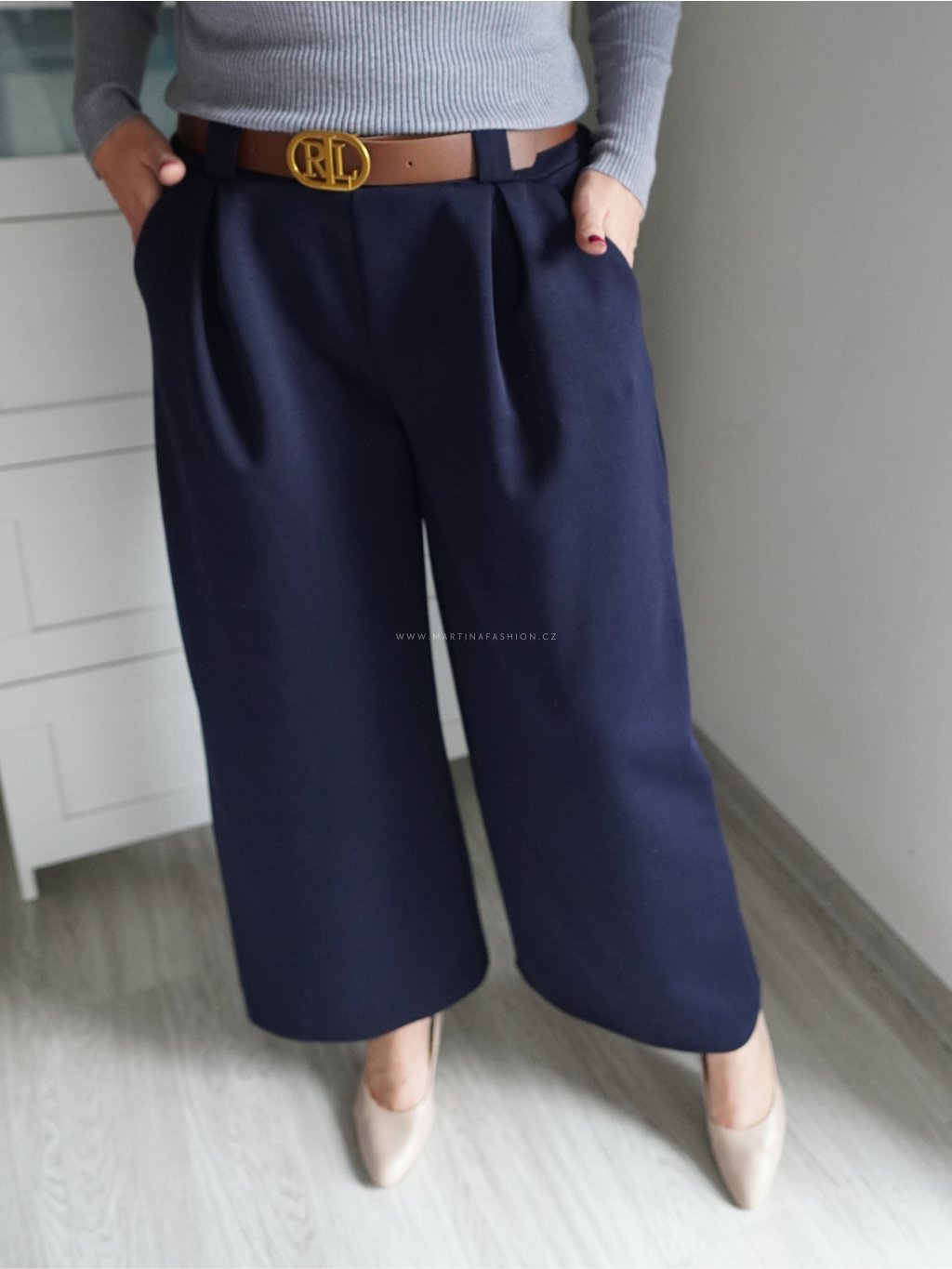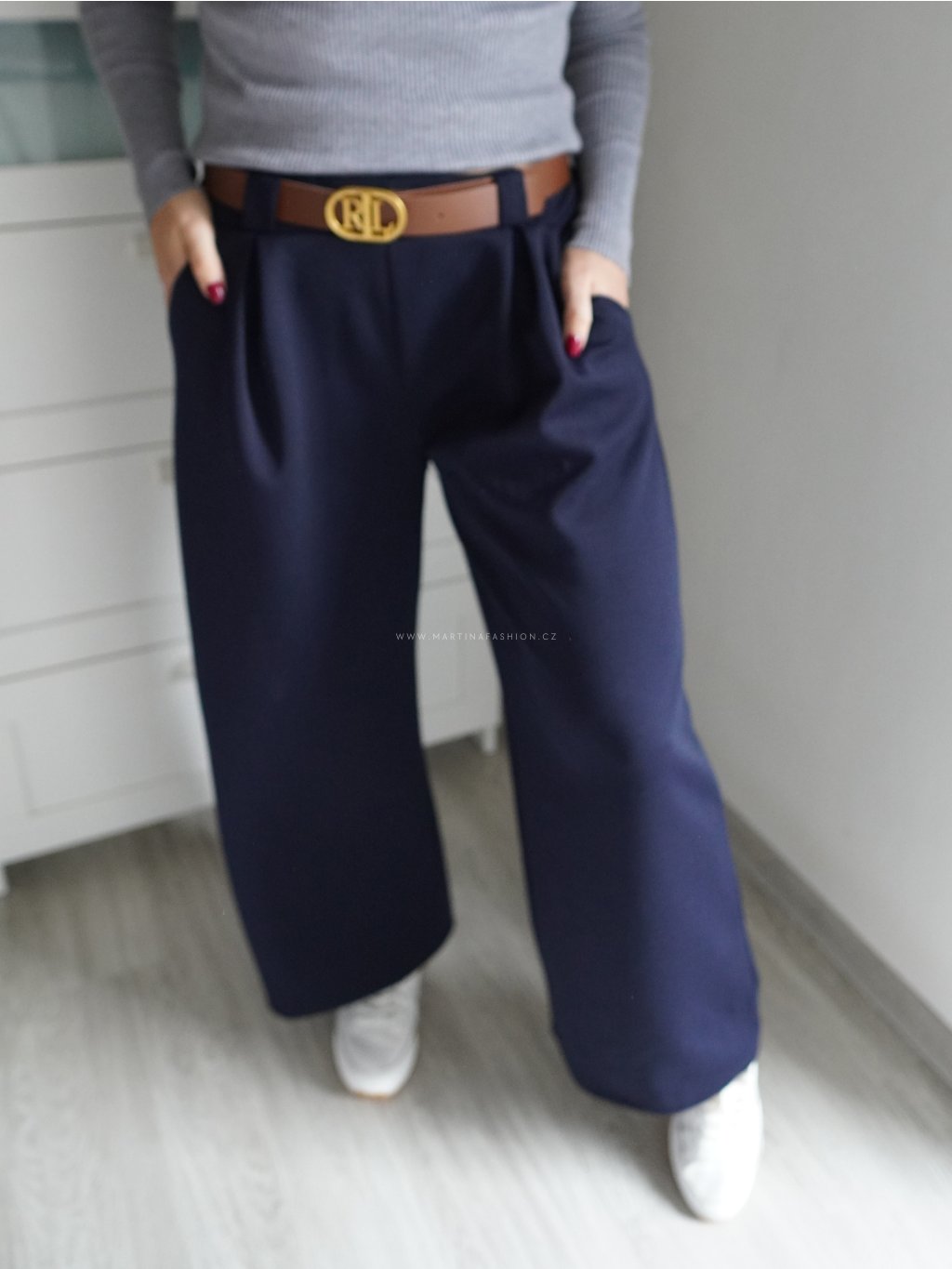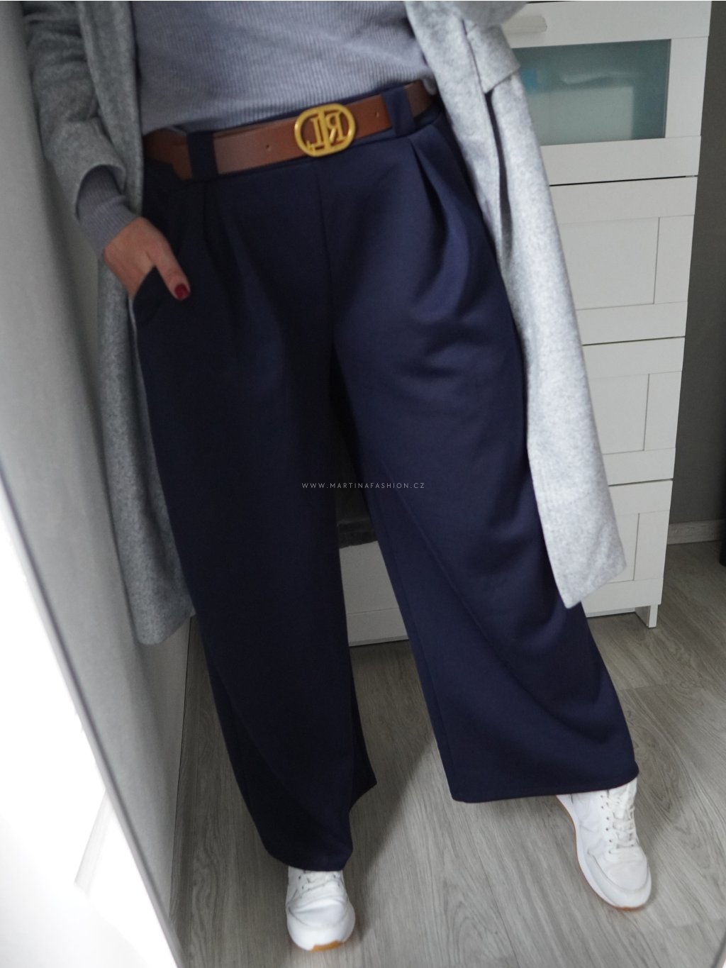 Tmavě modré kalhoty ELLARIE s páskem