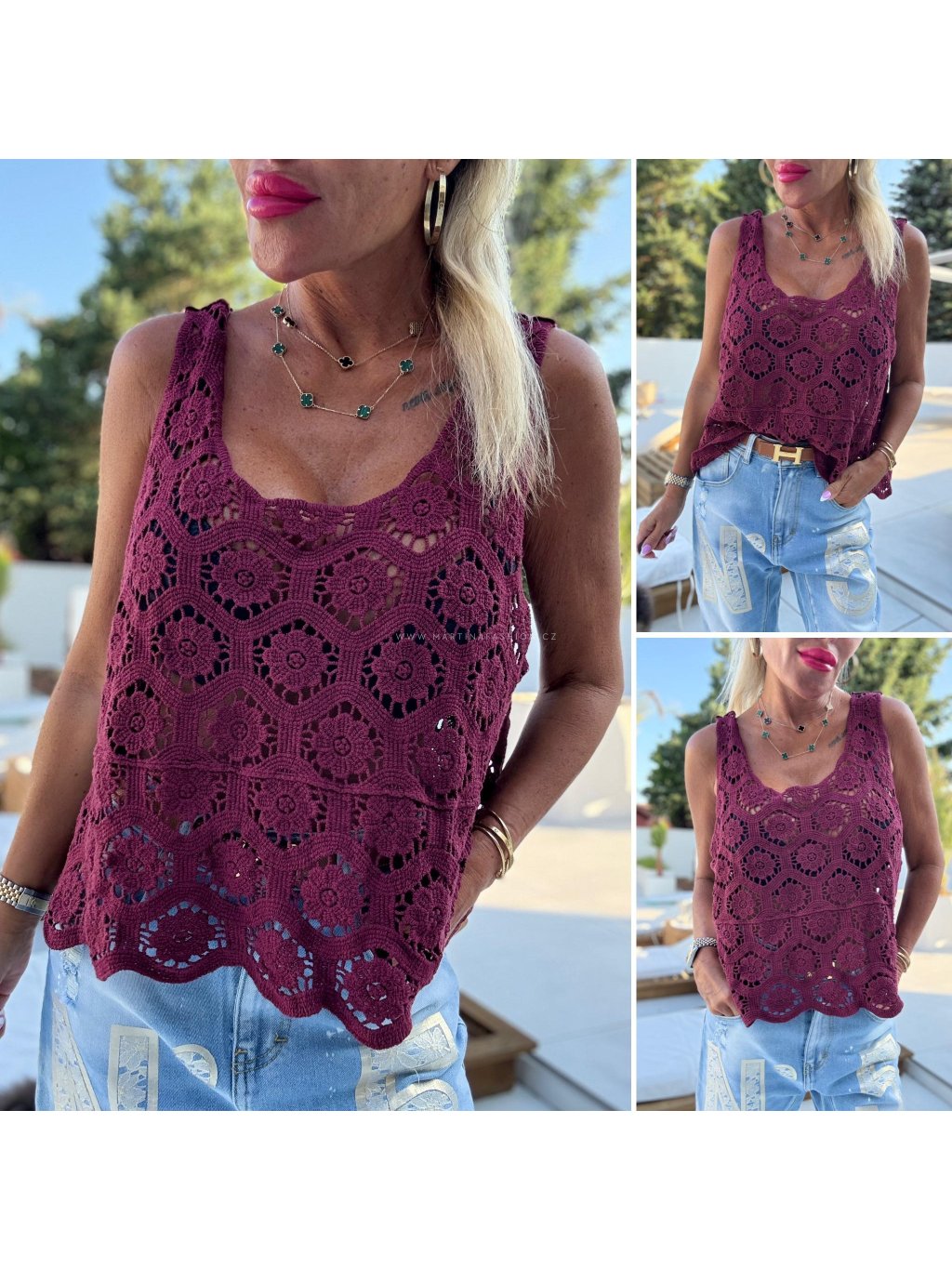 Stylové háčkované tílko v boho duchu, které zaujme precizním vzorem a romantickým vzhledem. Ideální kousek na léto i dovolenou.